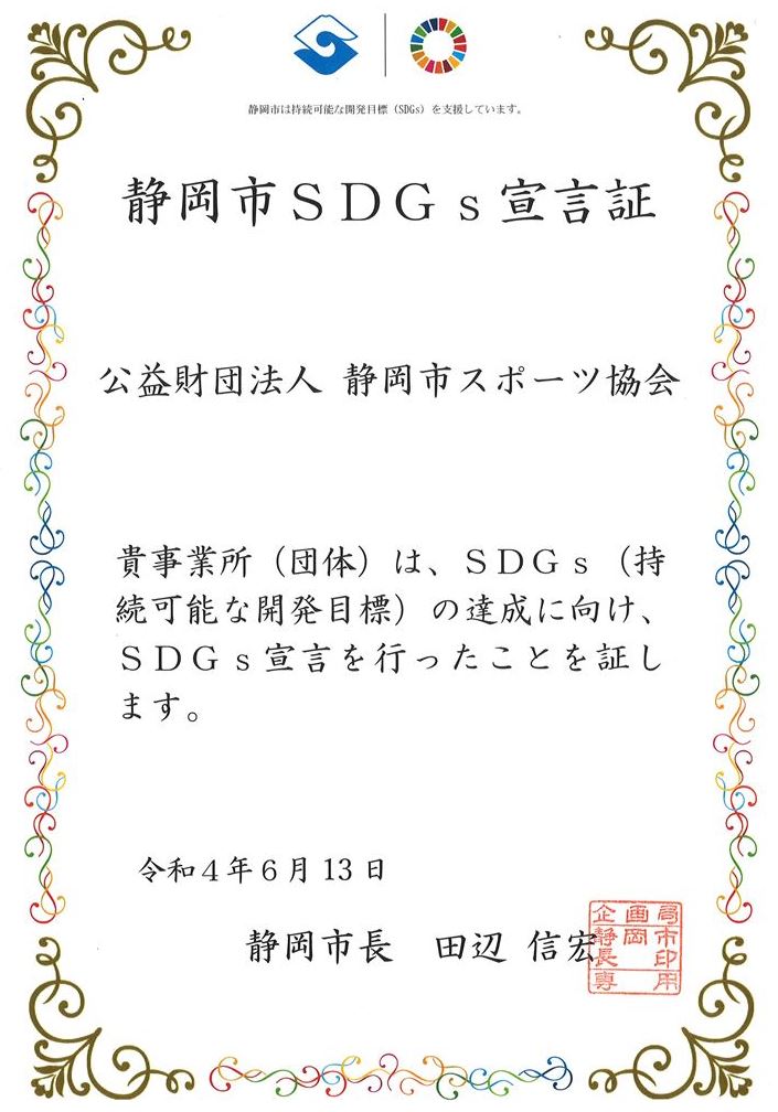 静岡市スポーツ協会は、静岡市におけるスポーツの普及・振興を図り、市民の健康・体力づくりの推進に関する事業を実施し、持続可能な健康で豊かな市民生活の実現に寄与します。